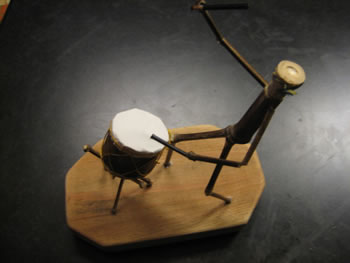 ママさん2作目 見れば分かる?解説聞きたい? これはネ〜、、、、鼓童をイメージした作品。 鼓童とは、 佐渡を拠点として全国各地、世界各国を周って講演活動をしている、 日本最大の和太鼓グループでよ〜 俺も一度見たことあるけどさ〜、もうなんていうか・・・。 心臓を音が直接圧迫するというか、耳だけじゃなく体でも聴かされるみたいな。 震動が空気だけじゃなく体にまで伝わってくるのよ〜。 いろんな感情を鼓舞させるような演奏でよ〜、、たまんね〜の。