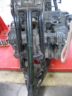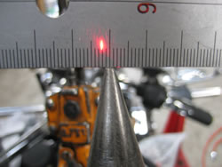 きょうは、Z1Fのフレーム測定です。 フレーム修正機と言うよりは、測定機ですよ〜、 測定機に乗せると垂直、水平、が判ります、検査軸をネックに取付レーザーで目視 (曲がってる方向が見えます。)mmで セットにあたって一番大事なのがバイクのセンターを出す事、これが正確に、 出来ませんと、曲がりの判断を誤ります、また、まちがって修正する事になります。 この修正機を開発するに到っては、まず正確に測れること、狂わない事、早くセットが出来る事、 ホイールベースの長さに関係なくセット出来る事など 、欲張った修正機です。 曲がりを直す修正シャフトがまた特許ですが、追々書いていきます。 |